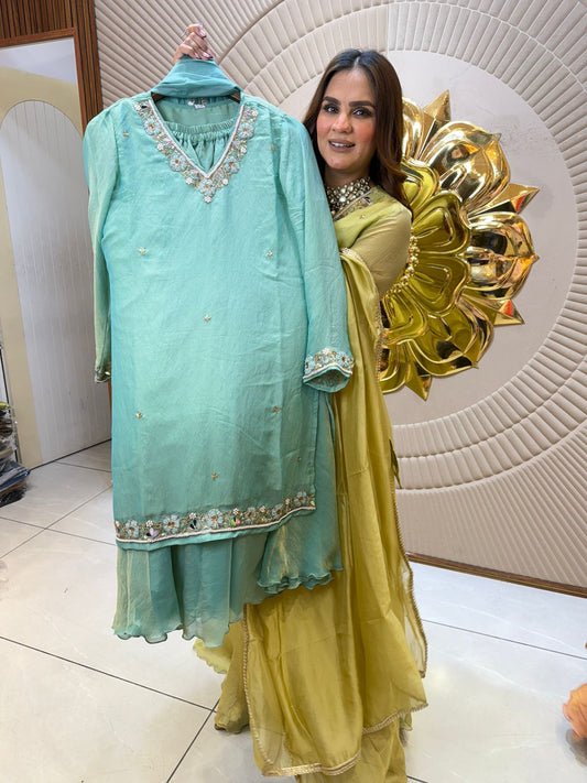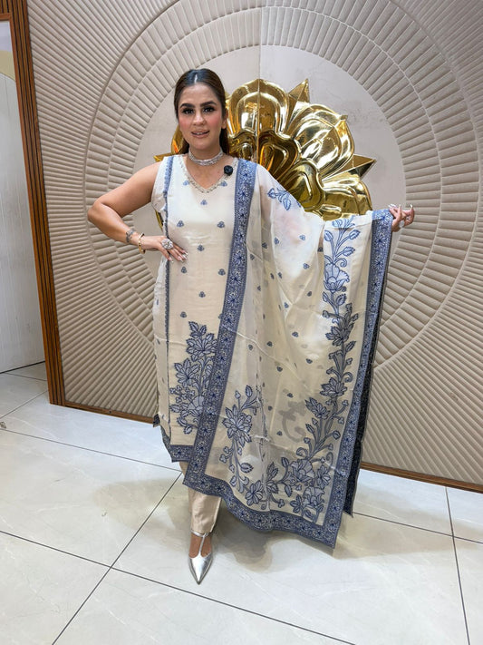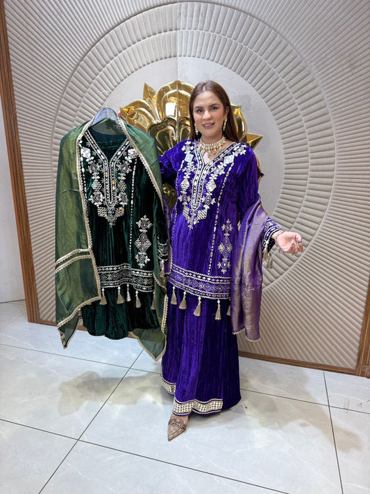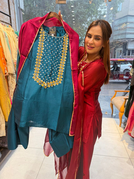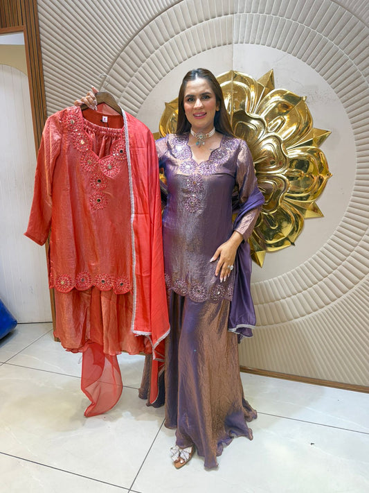 3 Piece Indo-Western Set With Embroidery Blazer PC1513