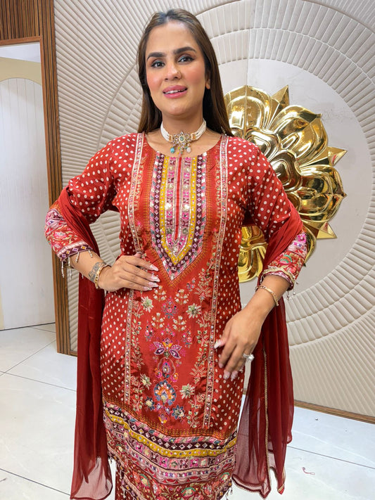 Elegant Orange Suit With Lace Work On Dupatta PC2564