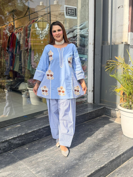 Stunning Denim Co-Ord Set With Embroidery Work PC2898