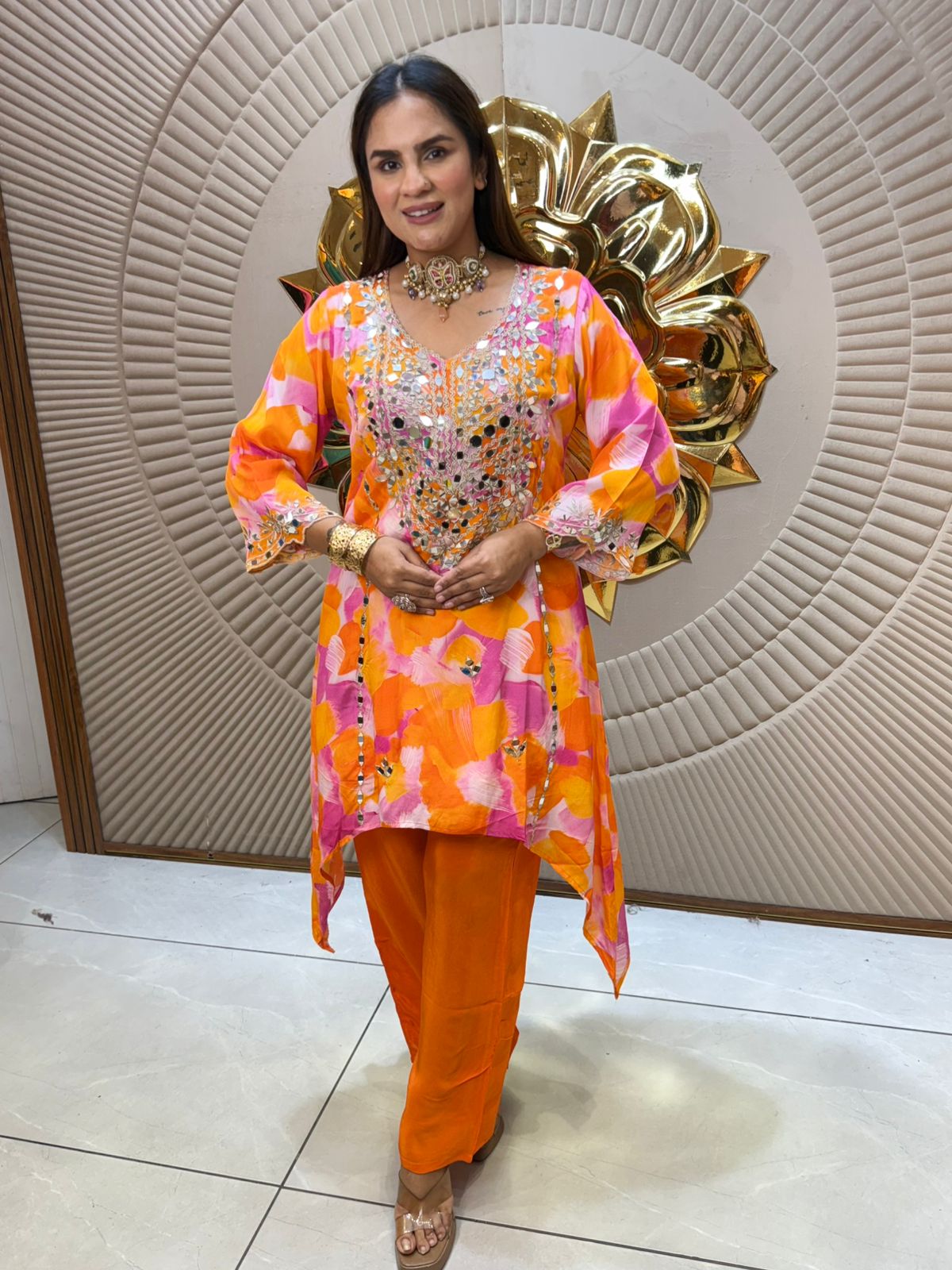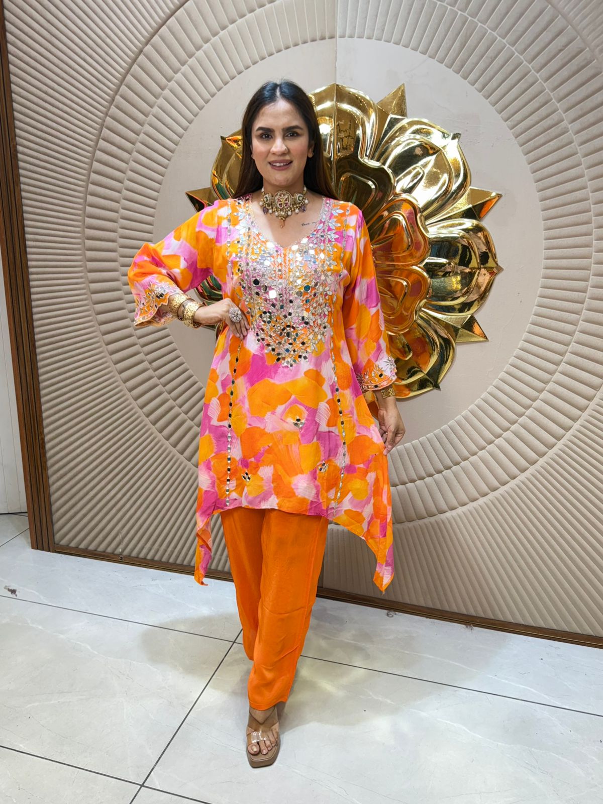 Enhance your traditional wardrobe with this Beautiful Cordset featuring intricate mirror work. Expertly crafted, the delicate mirrors add a subtle shimmer that complements any ethnic outfit. Perfect for festive occasions or casual wear, this cordset brings a blend of elegance and artisanal charm to your ensemble. Durable and stylish, it offers both aesthetic appeal and lasting quality.