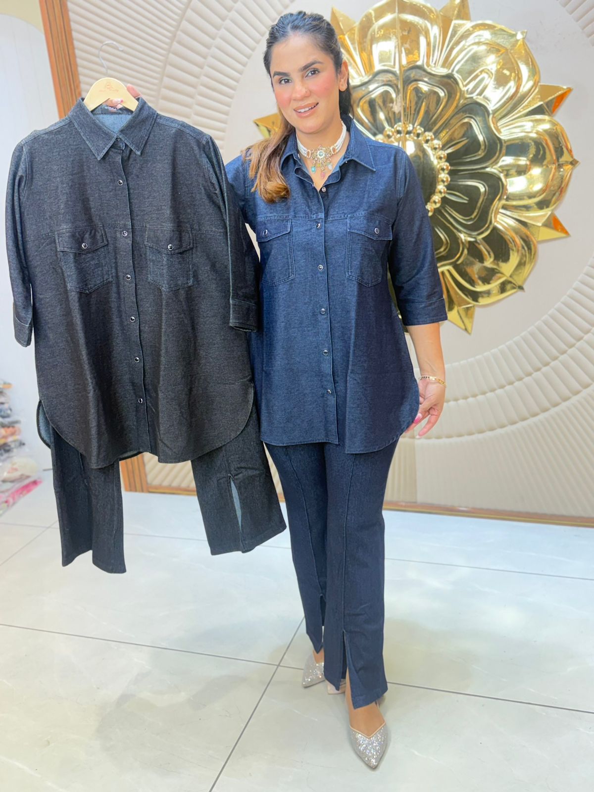 Elevate your casual wardrobe with this stunning denim co-ord set. Featuring a perfectly matched top and bottom in premium denim, this set offers effortless style for everyday wear. The classic blue wash pairs seamlessly with versatile pieces, making it ideal for brunches, outings, or relaxed weekends. Crafted for comfort and durability, this co-ord set delivers that coveted put-together look without the effort. Perfect for those who appreciate quality basics with contemporary appeal.