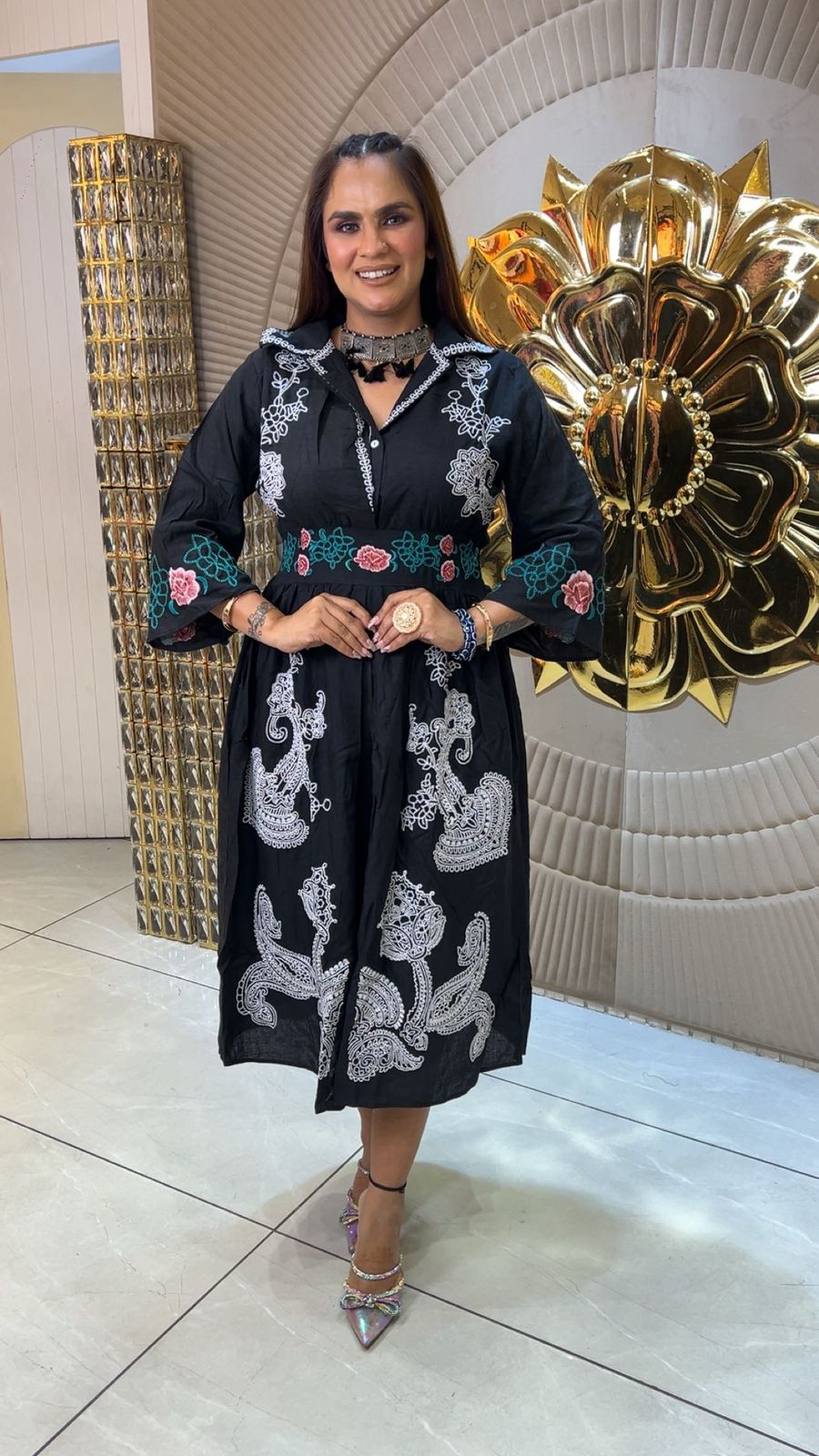 This beautifully crafted dress features intricate embroidery work that adds a touch of elegance and sophistication. Designed with attention to detail, it offers a refined look suitable for special occasions. The quality fabric ensures comfort while maintaining a graceful silhouette, making it a versatile addition to your wardrobe.