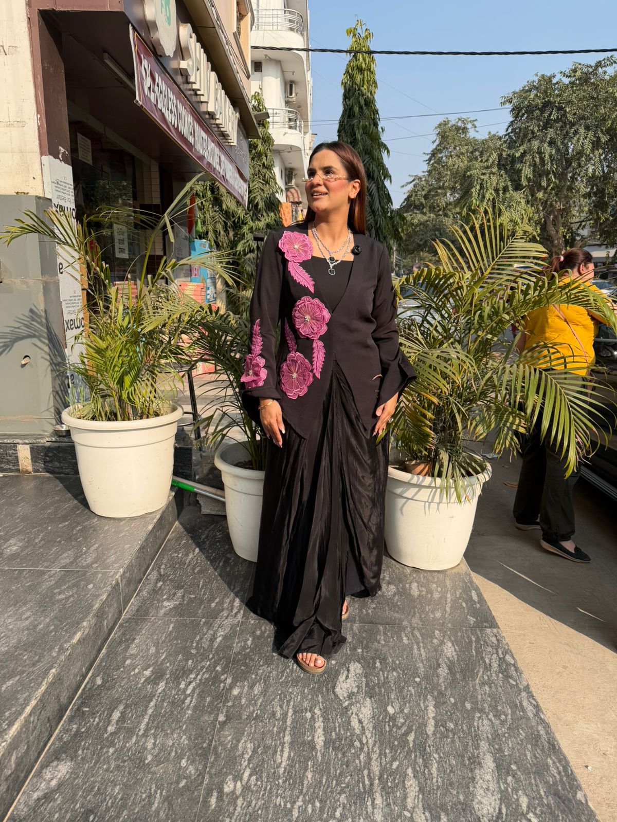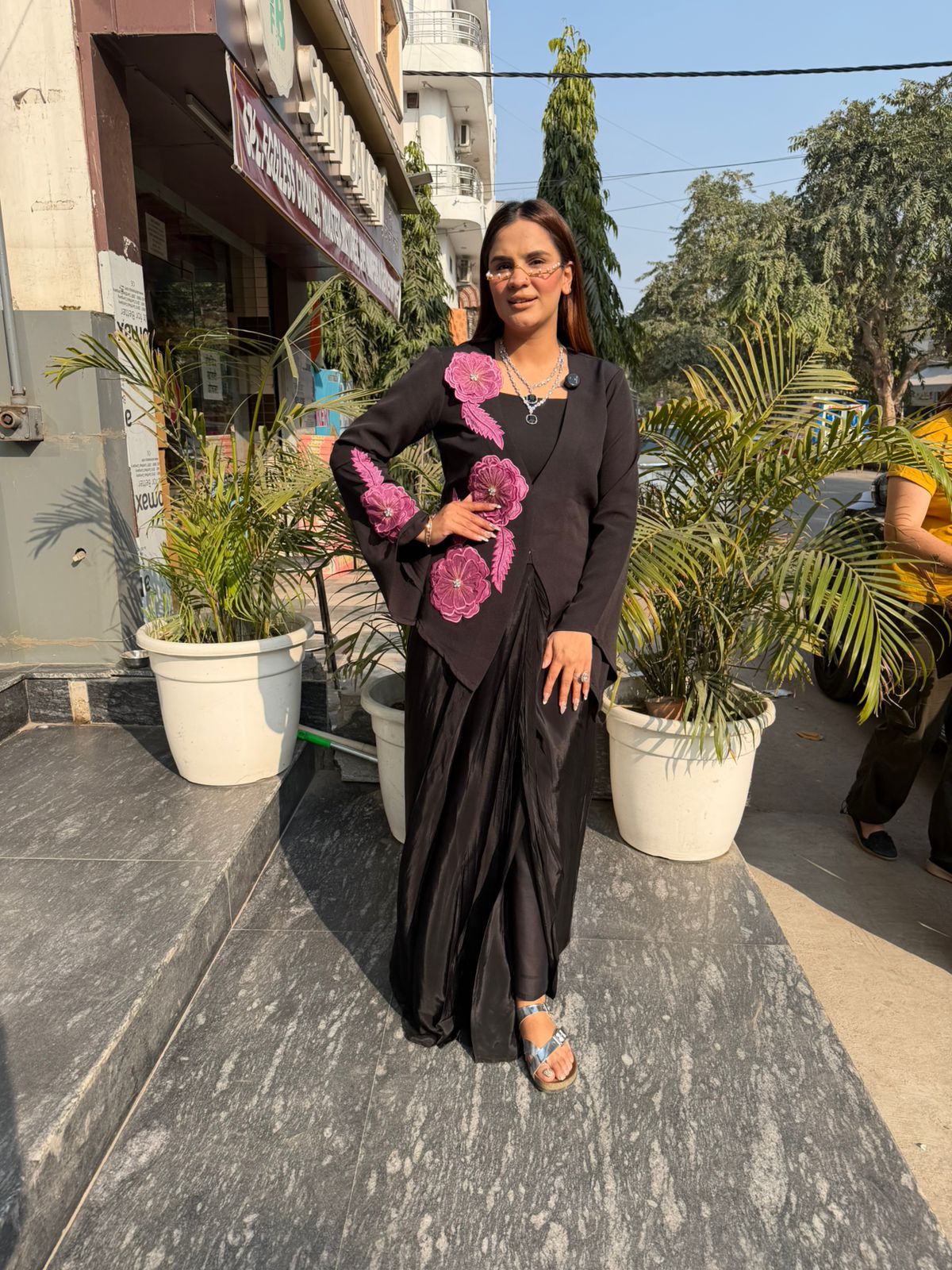 Elevate your wardrobe with this stunning Indo-Western ensemble that seamlessly blends traditional elegance with contemporary style. The piece features an intricately designed floral blazer that adds a sophisticated layer to your look, perfect for festive occasions, celebrations, or elevated everyday wear. The thoughtful fusion of classic silhouettes with modern tailoring ensures you'll stand out while maintaining refined grace. Ideal for those who appreciate versatile pieces that transition effortlessly from formal events to semi-casual gatherings. This statement piece celebrates individuality and cultural appreciation through fashion-forward design.