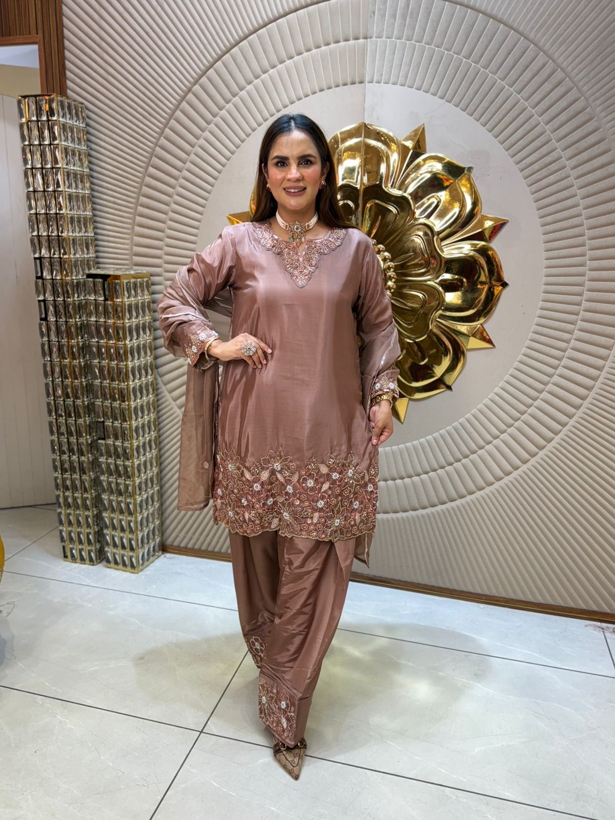 Elevate your wardrobe with this Beautiful Suit featuring intricate lacer cut floral embroidery, model PC1947. Expertly crafted to combine traditional elegance with detailed artistry, this suit offers both comfort and sophistication. Its delicate floral patterns enhance the fabric’s texture, making it perfect for formal occasions or festive events. Experience a refined silhouette that accentuates your style with subtle yet striking embellishments.