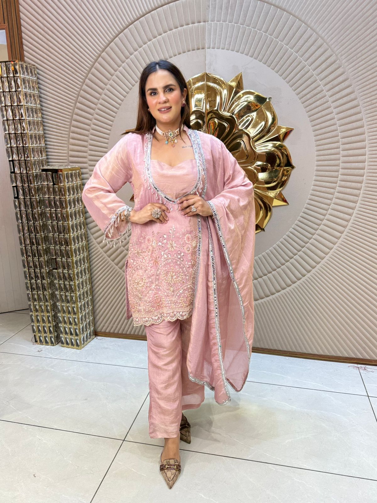 Experience elegance with the Beautiful Suit With Mirror Work PC1951, crafted to showcase intricate mirror embellishments that catch the light delicately. This suit blends traditional artistry with contemporary design, offering a refined look suitable for festive occasions or formal gatherings. The detailed mirror work not only enhances its visual appeal but also ensures you stand out with subtle sophistication. Designed with expert craftsmanship, this suit promises comfort and style in one exquisite package.
