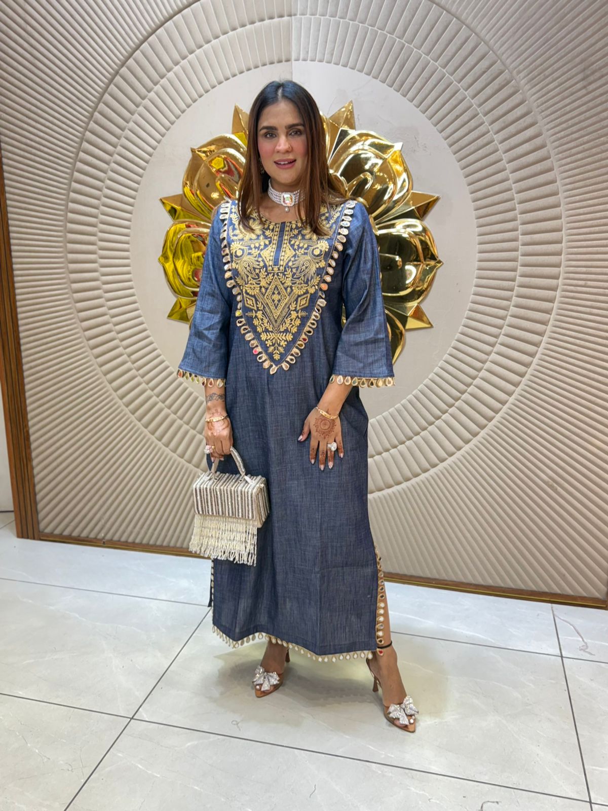 This refined dress ensemble combines sophisticated design with practical elegance, featuring a gracefully tailored silhouette that flatters diverse body types. The quality fabric drapes beautifully while maintaining its shape, offering both comfort and confidence for extended wear. Complemented by a matching hand bag, this coordinated set provides a complete styling solution for formal dinners, professional events, or upscale social gatherings. The meticulous craftsmanship evident in the dress's construction and accessory pairing demonstrates a commitment to quality. An essential addition to any discerning wardrobe, this piece seamlessly transitions from day to evening occasions with understated sophistication.