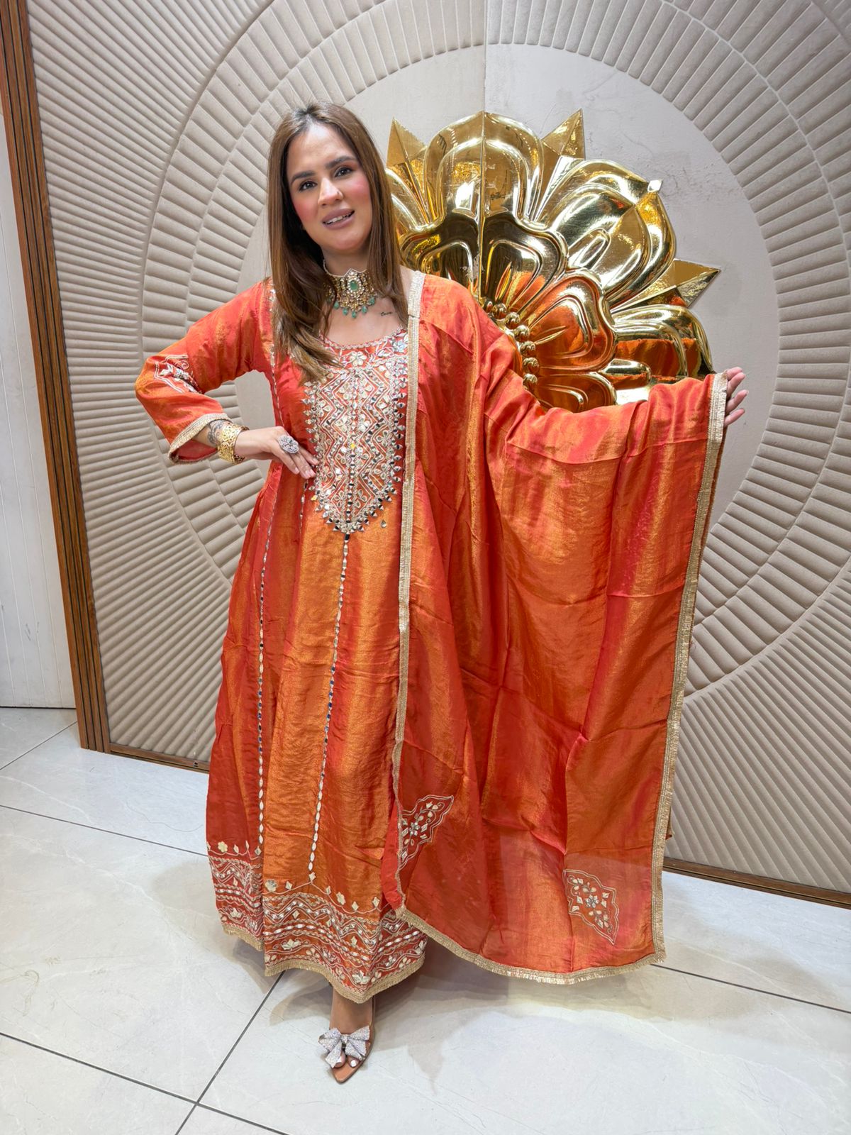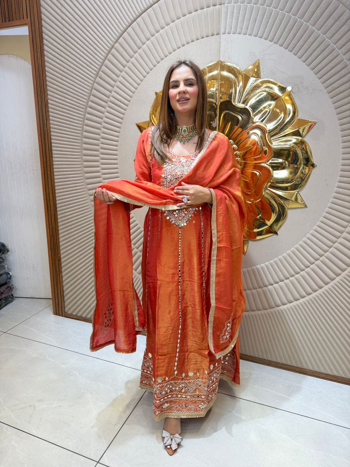 Elevate your ethnic wardrobe with this sophisticated long suit, meticulously crafted with intricate lace detailing. The graceful silhouette combines traditional elegance with contemporary design, featuring delicate lacework that adds dimension and visual interest throughout. Perfect for festive occasions, celebrations, or formal gatherings, this piece showcases refined craftsmanship and premium quality. The flowing fabric drapes beautifully, ensuring comfort without compromising on style. An investment in timeless sophistication that transcends seasonal trends.