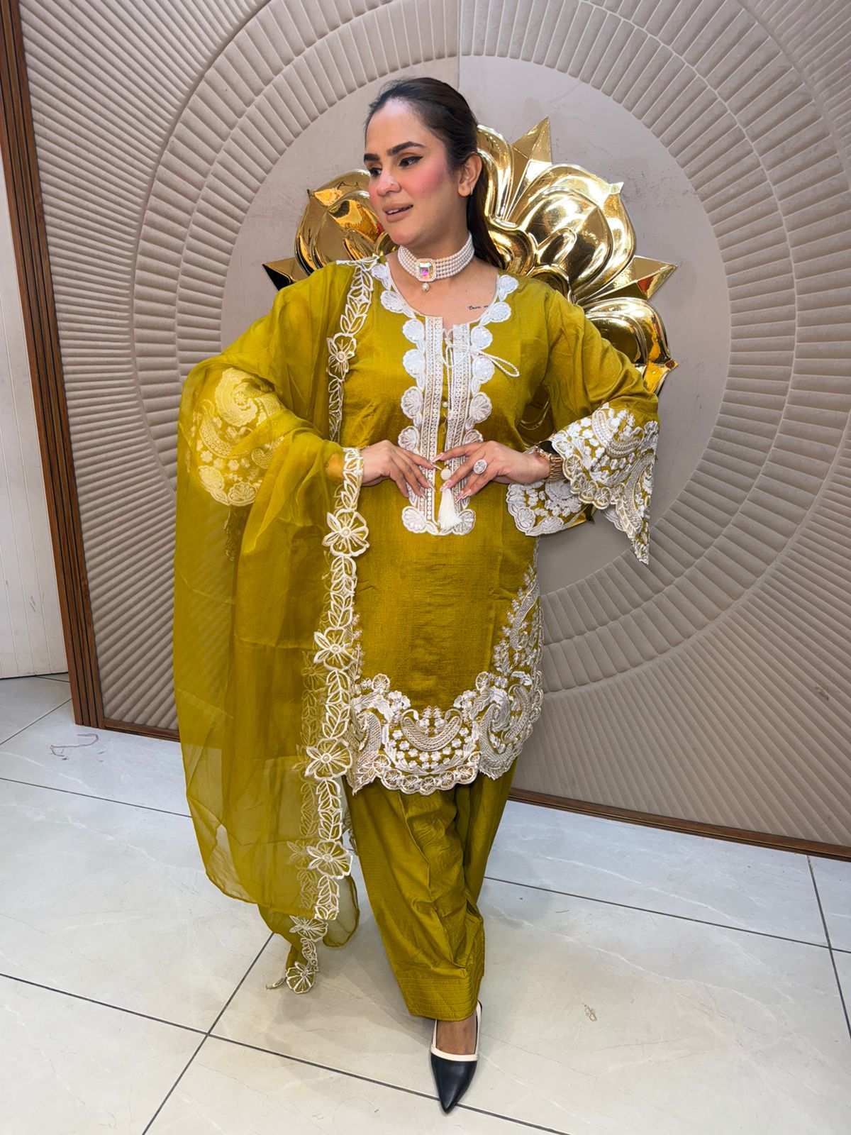 Elevate your ethnic wardrobe with this sophisticated suit featuring intricate craftsmanship. The ensemble combines traditional elegance with contemporary design, showcasing a beautifully tailored silhouette paired with a delicate net dupatta that adds graceful movement and dimension. Perfect for festive occasions, weddings, or formal gatherings, this piece delivers refined style with meticulous attention to detail. The net dupatta drapes effortlessly, creating an ethereal effect while maintaining the structured elegance of the suit. Ideal for those who appreciate timeless sophistication and quality construction in their traditional attire.