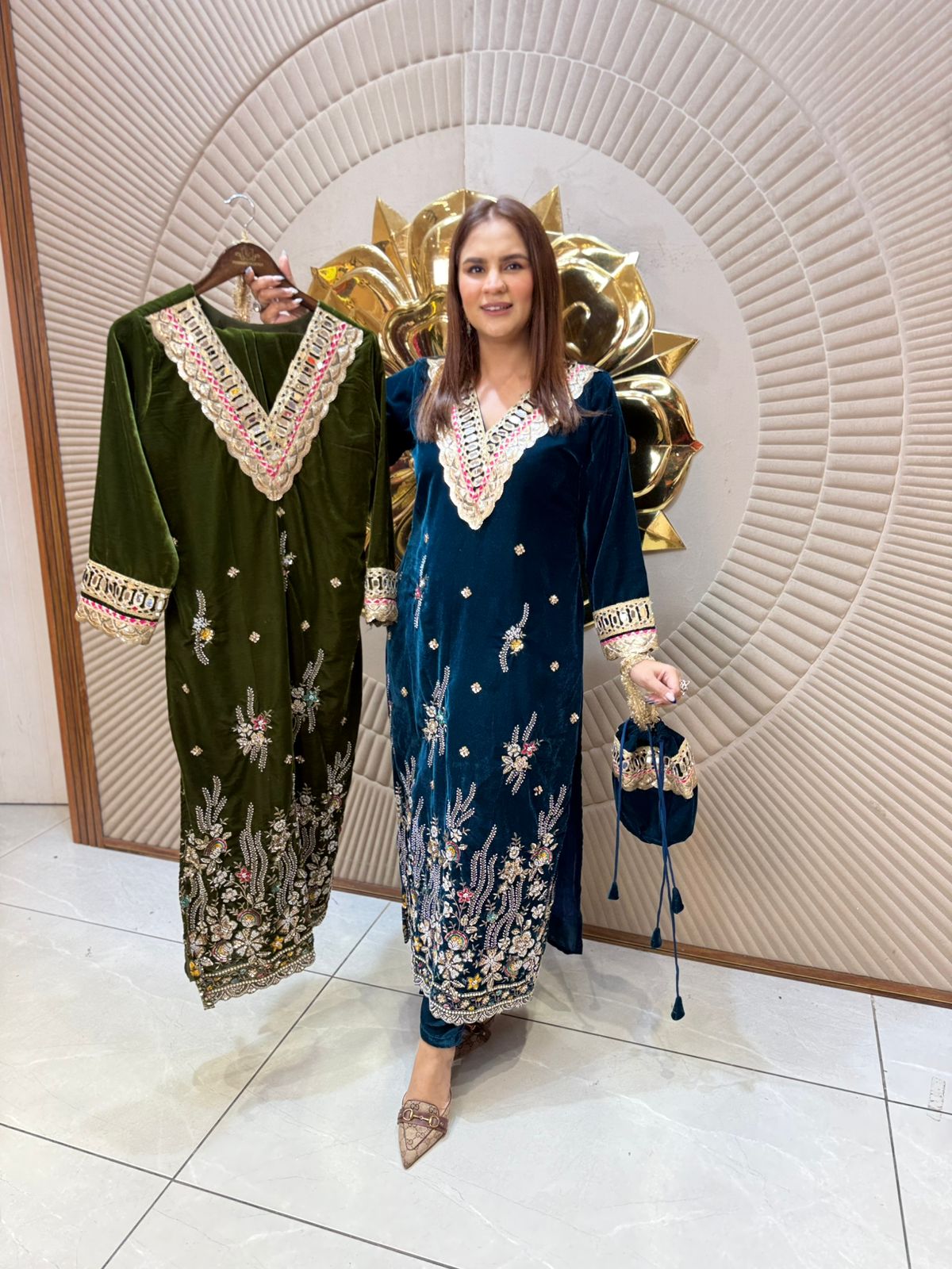 Elegant Velvet Dress With Hand Bag PC2290