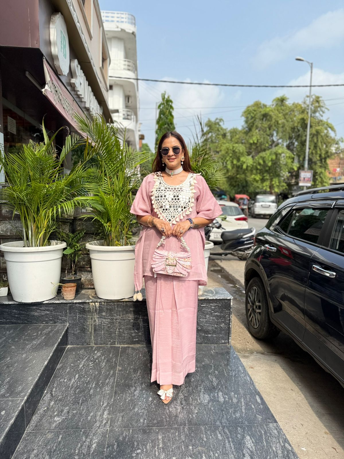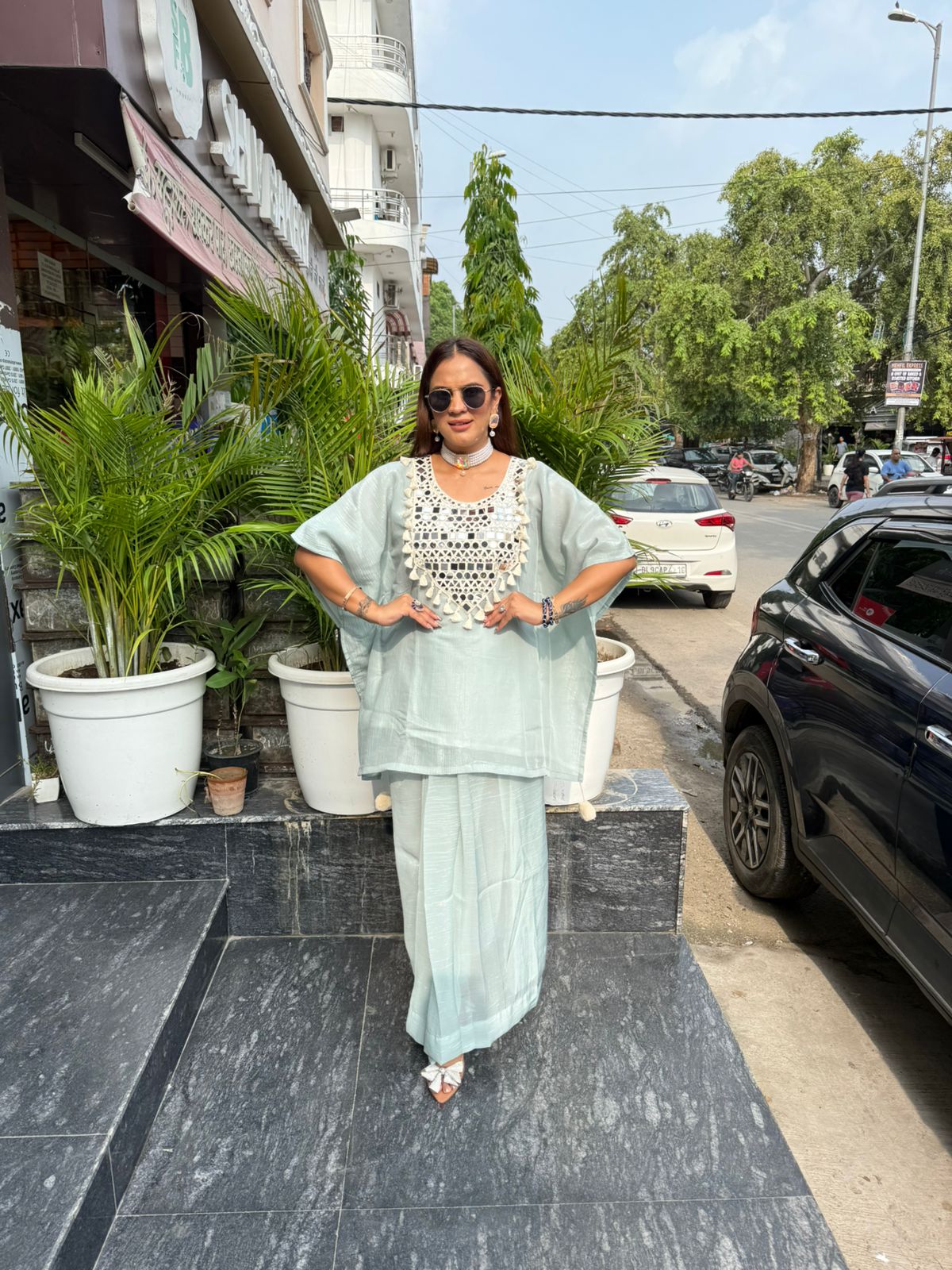 This Kaaftan Style Cordset features intricate front mirror work, adding a traditional yet elegant touch to girls' clothing. Designed for comfort and style, it combines breathable fabric with detailed craftsmanship, making it ideal for festive occasions or casual wear. The cordset design ensures easy wearability while enhancing the overall aesthetic. Perfect for those seeking a blend of cultural charm and modern comfort.