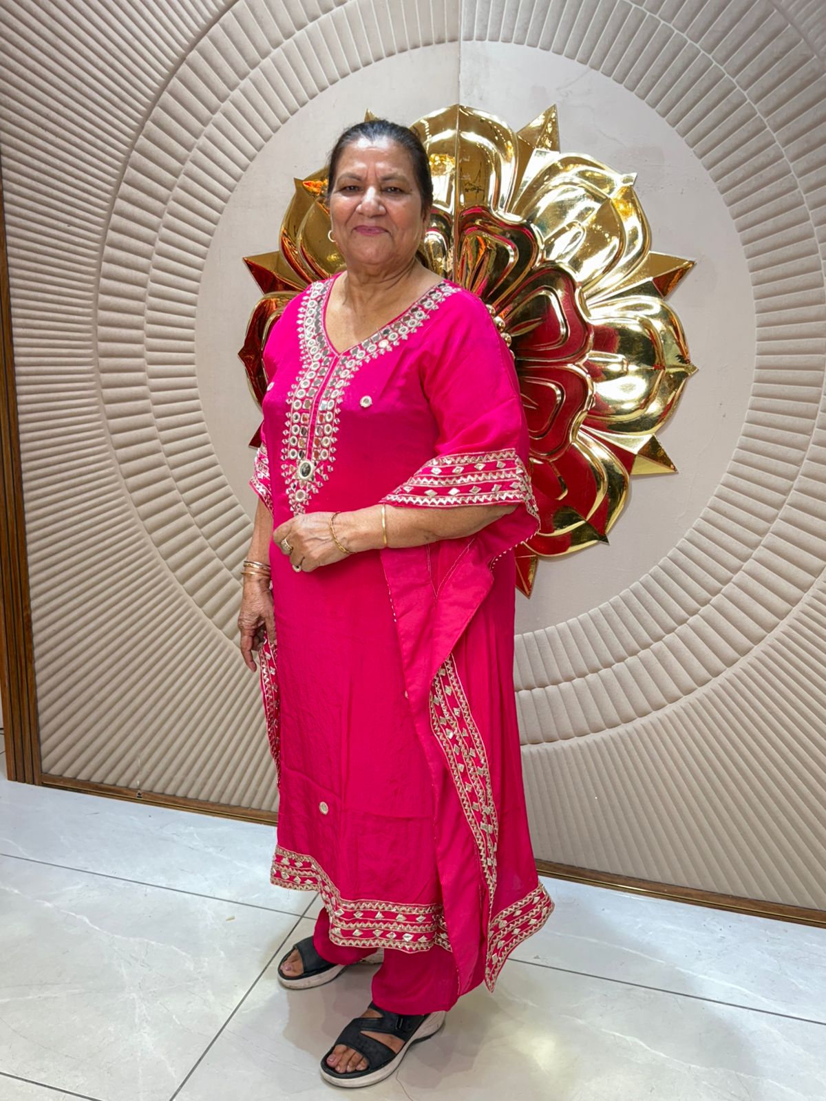 Crafted from pure crape, this kaftan blends comfort with elegance. The intricate mirror work adds a refined sparkle, perfect for both casual and festive occasions. Its lightweight fabric offers a breathable drape, enhancing ease of movement while maintaining a sophisticated silhouette. Ideal for those seeking understated luxury with artisanal detailing.