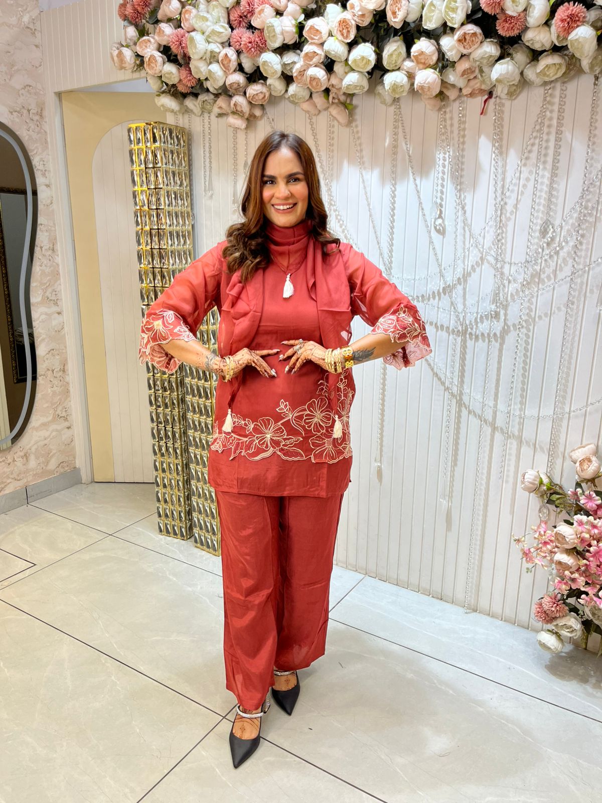 Elevate your wardrobe with this expertly crafted co-ord set, featuring a harmonious blend of style and comfort. The set includes a matching scarf that adds versatility and a polished finish to your look. Designed for effortless coordination, it offers a refined silhouette perfect for both casual outings and sophisticated events. Experience the ease of a complete ensemble that balances contemporary fashion with timeless appeal.