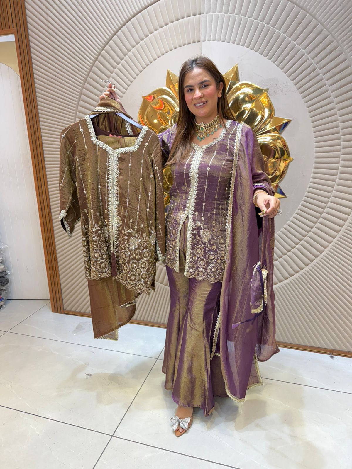 Elevate your evening ensemble with this exquisite velvet partywear suit, crafted for those who appreciate refined sophistication. The luxurious velvet fabric drapes beautifully, creating an elegant silhouette perfect for weddings, celebrations, and formal gatherings. Rich in texture and depth, this piece combines traditional craftsmanship with contemporary styling. The suit's impeccable tailoring ensures a flattering fit, while the sumptuous material catches light gracefully throughout the evening. Ideal for making a memorable impression at your next special occasion.